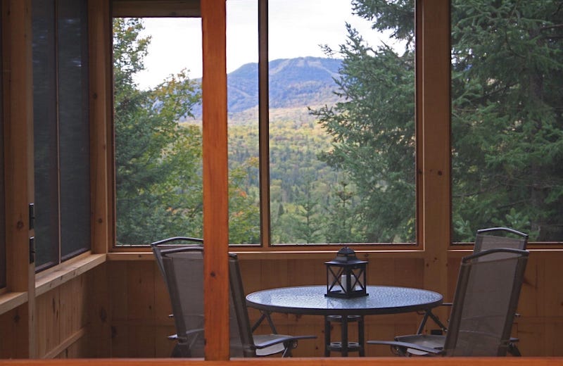 Screened gazebo with mountain backdrop