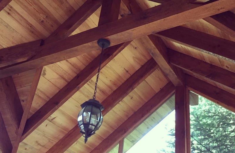 Rustic beamed ceiling of the gazebo