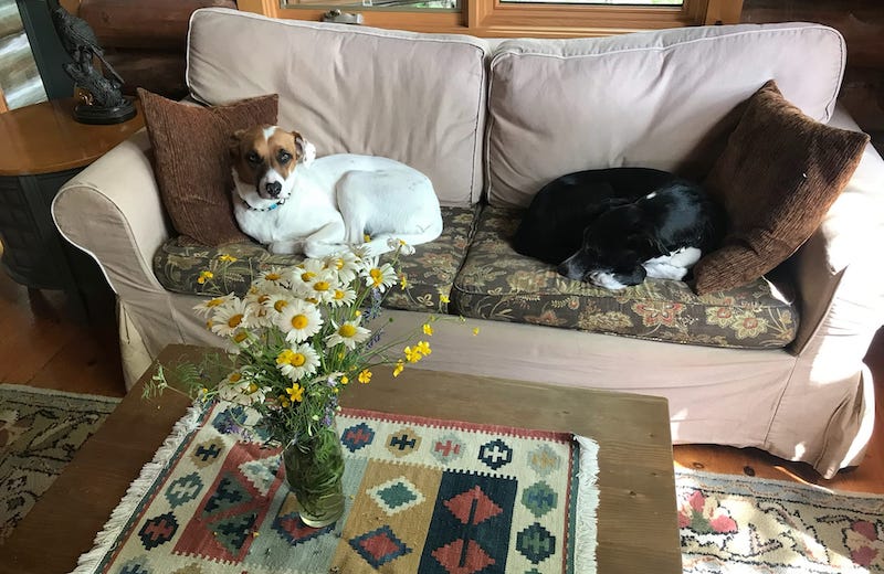 Snug couch time with the dogs