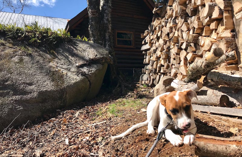 Puppy enjoying a stick near the guesthouse